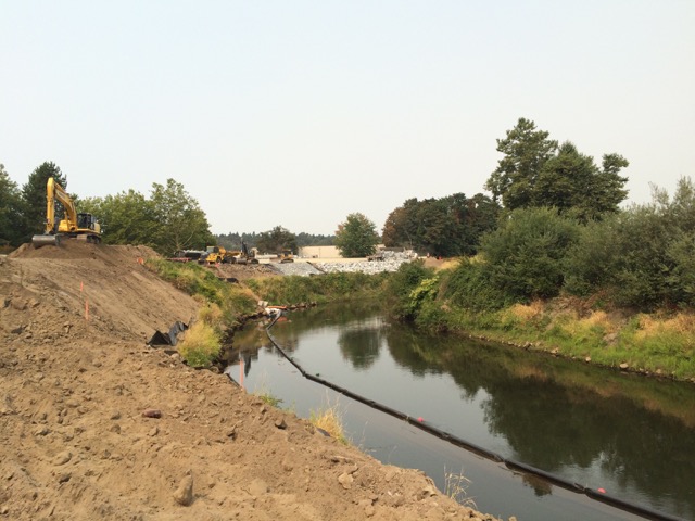 The Desimone-Briscoe School Levee Rehabilitation MATOC Project for the US Army Core of Engineers – Seattle district involved the excavation and reconstruction of the levee along the green river in Tukwila, WA. Major in-water work included the excavation of the earthen levee, the import and installation of 14,000 tons of heavy loose riprap, grading and placement of native embankment fill above the ordinary high-water elevation and asphalt trail restoration.