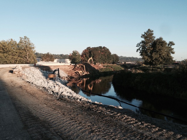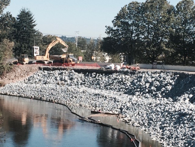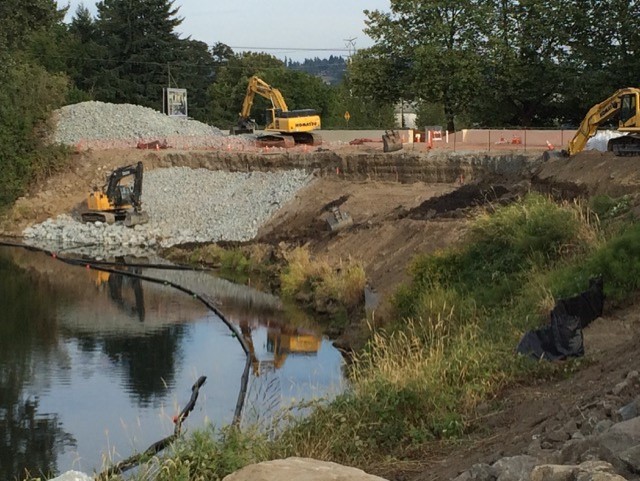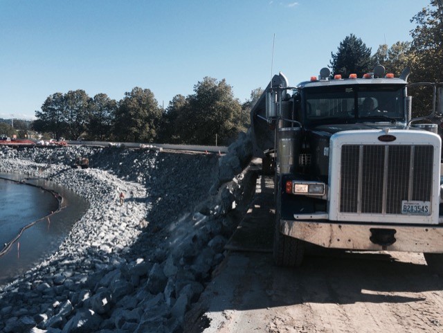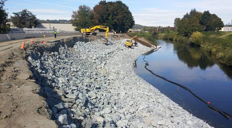 The Desimone-Briscoe School Levee Rehabilitation MATOC Project for the US Army Core of Engineers – Seattle district involved the excavation and reconstruction of the levee along the green river in Tukwila, WA. Major in-water work included the excavation of the earthen levee, the import and installation of 14,000 tons of heavy loose riprap, grading and placement of native embankment fill above the ordinary high-water elevation and asphalt trail restoration.